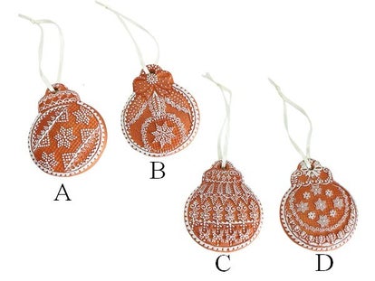 Ajoutez une touche de douceur et d’authenticité à votre sapin avec ces jolies boules à suspendre façon biscuit de pain d’épices. Leurs motifs blancs délicatement dessinés évoquent la tradition des Noëls d’antan et créent une ambiance chaleureuse et conviviale. En polyrésine.