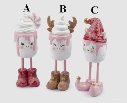 Ajoutez une touche de magie sucrée à votre décoration de Noël avec ces adorables figurines en forme de guimauves festives ! Avec leur glaçage rose scintillant, leurs visages souriants et leurs accessoires hivernaux (chapeau de Noël, bois de renne ou sucre d’orge), ces petits personnages apportent une ambiance chaleureuse et gourmande à votre intérieur. Parfaits pour une déco de table, une étagère ou sous le sapin, ils séduiront petits et grands par leur originalité et leur charme féerique. En polyrésine.