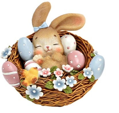 Une belle décoration pour Pâques mais surtout pour tous les fans du style Alice au pays des merveilles. Couleurs douces et détails effet feuilles d'or se marierons parfaitement à toutes les décorations intérieures. En polyrésine.