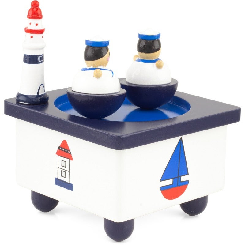 Découvrez cette charmante boîte à musique en bois sur le thème de la mer. Elle est dotée d'un mécanisme traditionnel qui joue la mélodie "La mer", une chanson de Charles Trenet. Lorsque vous remontez le mécanisme à l'aide de la clé située sous la boîte à musique, de petits marins magnétiques se mettent à virevolter sur la piste, créant une scène enchantée. Cette boîte à musique ne nécessite ni pile ni batterie, offrant ainsi un jeu intemporel et écologique. Fabriquée en bois de qualité, elle constitue un cadeau parfait pour les amateurs de musique et les passionnés de la mer.