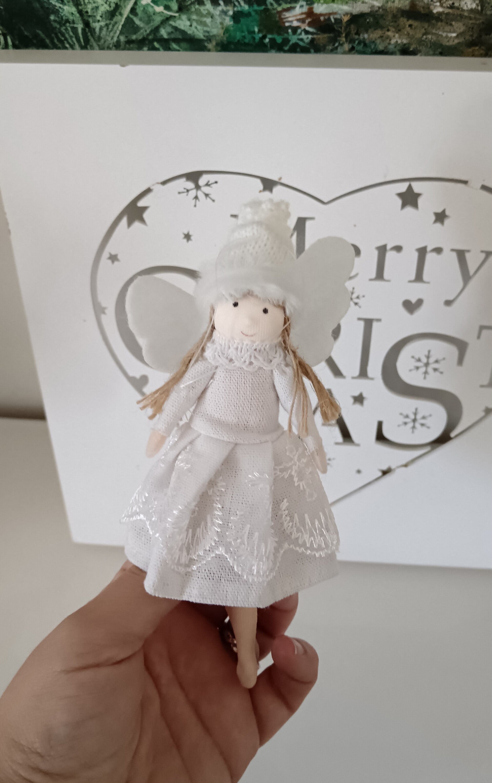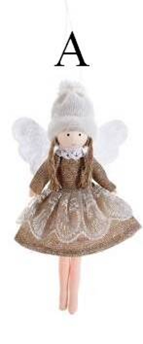 Petits anges à suspendre avec une robe élégantes et des détails en dentelle. Belle décoration de Noël pour le sapin.