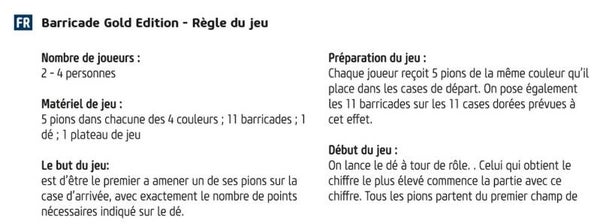 La stratégie est demandée ! Dans le jeu de société classique Barricade, vous devez ériger des barrières, éjecter des adversaires et trouver le meilleur chemin stratégique vers le but, même si d'autres joueurs bloquent le chemin! L'étoile halma, également appelé dames chinoises, est particulièrement facile à apprendre et est toujours très amusant - que ce soit lors d'une partie entre amis ou confortablement en famille. Ce jeu de société en bois de la collection "Gold édition" en fait un beau cadeau.