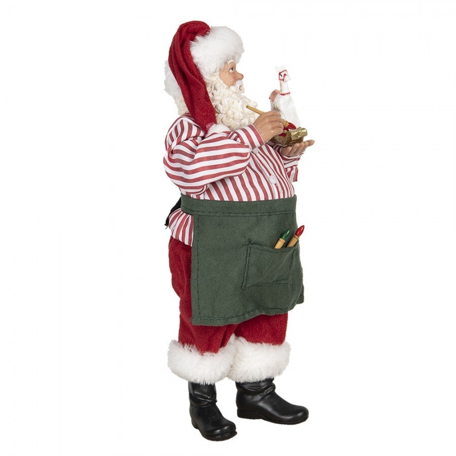 Un beau Père-Noël, vêtu de son tablier, entreint de peindre un petit cheval à bascule. Une belle décoration pour changer du traditionel Père-Noël.