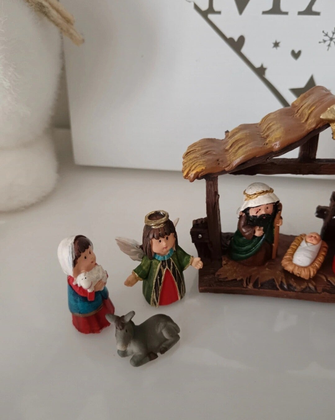Une petite crèche parfaite pour les petits espace. Avec 10 personnages que vous pouvez positionner comme vous le voulez. Décoration indispensable pour Noël. En polyrésine.