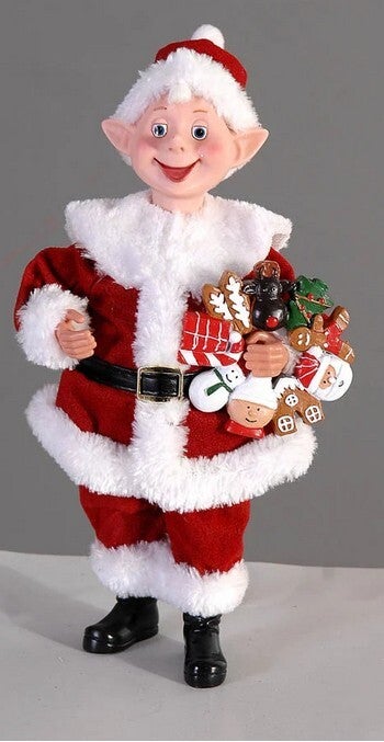 Cet Elfe a chipé l'habit du Père-Noël! Mais ça lui va tellement bien qu'on ne va pas lui en vouloir. Décoration de Noël parfaite pour les fêtes. En tissu et polyuréthane.