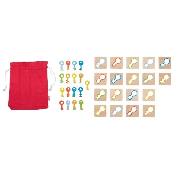 La vitesse est la clé du succès dans ce mémo en bois. Mais attention, les joueurs doivent rester bien concentrés pour gagner. Chacune des 18 clés ne peut rentrer que dans un seul des 18 cadres. Une fois la clé sortie du sac, qui saura montrer du doigt le cadre correspondant ? Les couleurs seront vos alliées pour résoudre les énigmes.