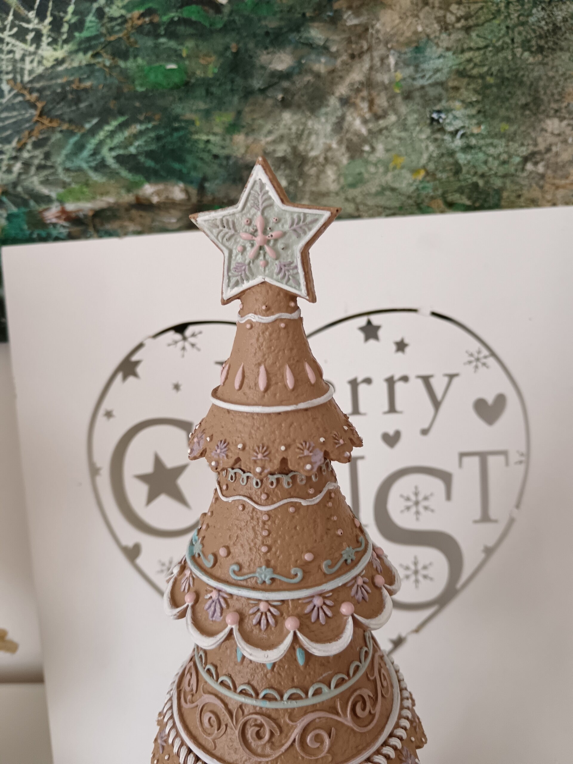 Ce grand sapin pastel et gourmand sera parfait pour compléter votre village de Noël Shabby chic. En polyrésine.
