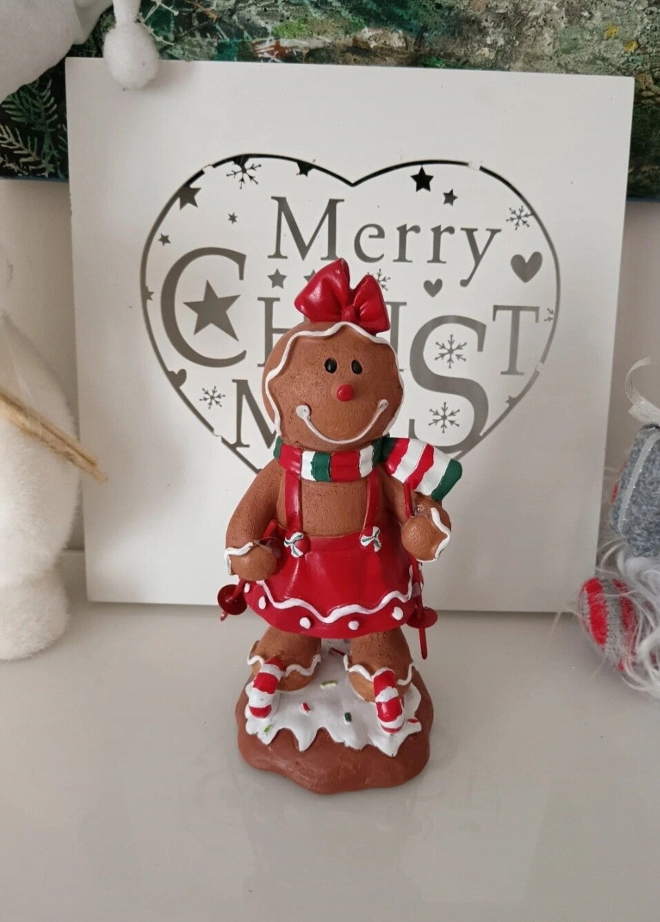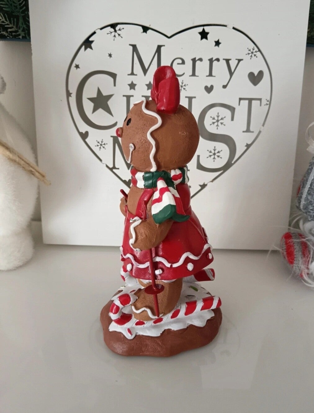 Ils sont beaux ces pains d'épices en train de skier sur des sucres d'orge. Vêtues de rouge et vert ces figurines seront parfaites pour un Noël traditionnel. En polyrésine.