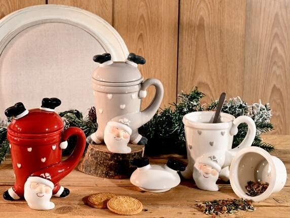 Envie d'une bonne tisane ou d'un bon thé chaud? Cette tisanière sera parfaite et ce Père-Noël faisant le poirier apportera une touche d'humour sur votre table et dans votre cuisine. Retirez le filtre et utilisez cette tasse pour un café ou un chocolat chaud. En céramique, contenance 300 ml.