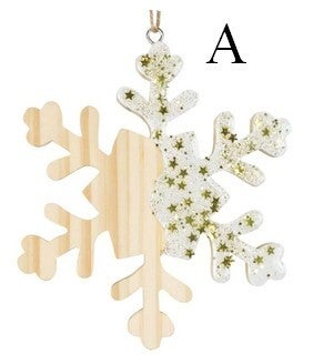 Pour une décoration de sapin aux couleurs naturelles et blanches, ces suspensions seront parfaites. La partie blanche avec paillettes est vernie, donnant un effet laqué.