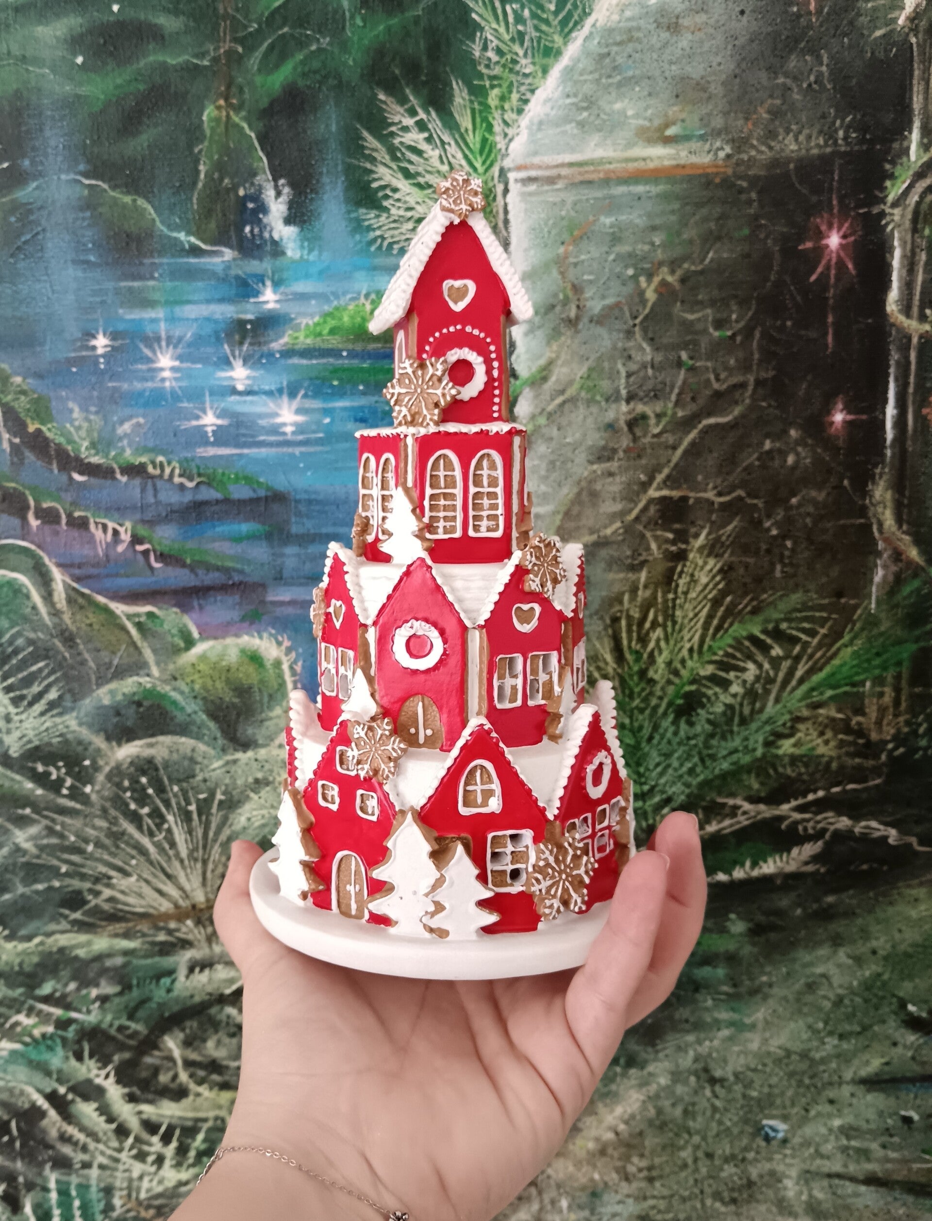Une belle pièce-montée pour une décoration de Noël toute en gourmandise. Rouge et blanche elle est parfaite pour une décoration traditionnelle. En polyrésine et LED.