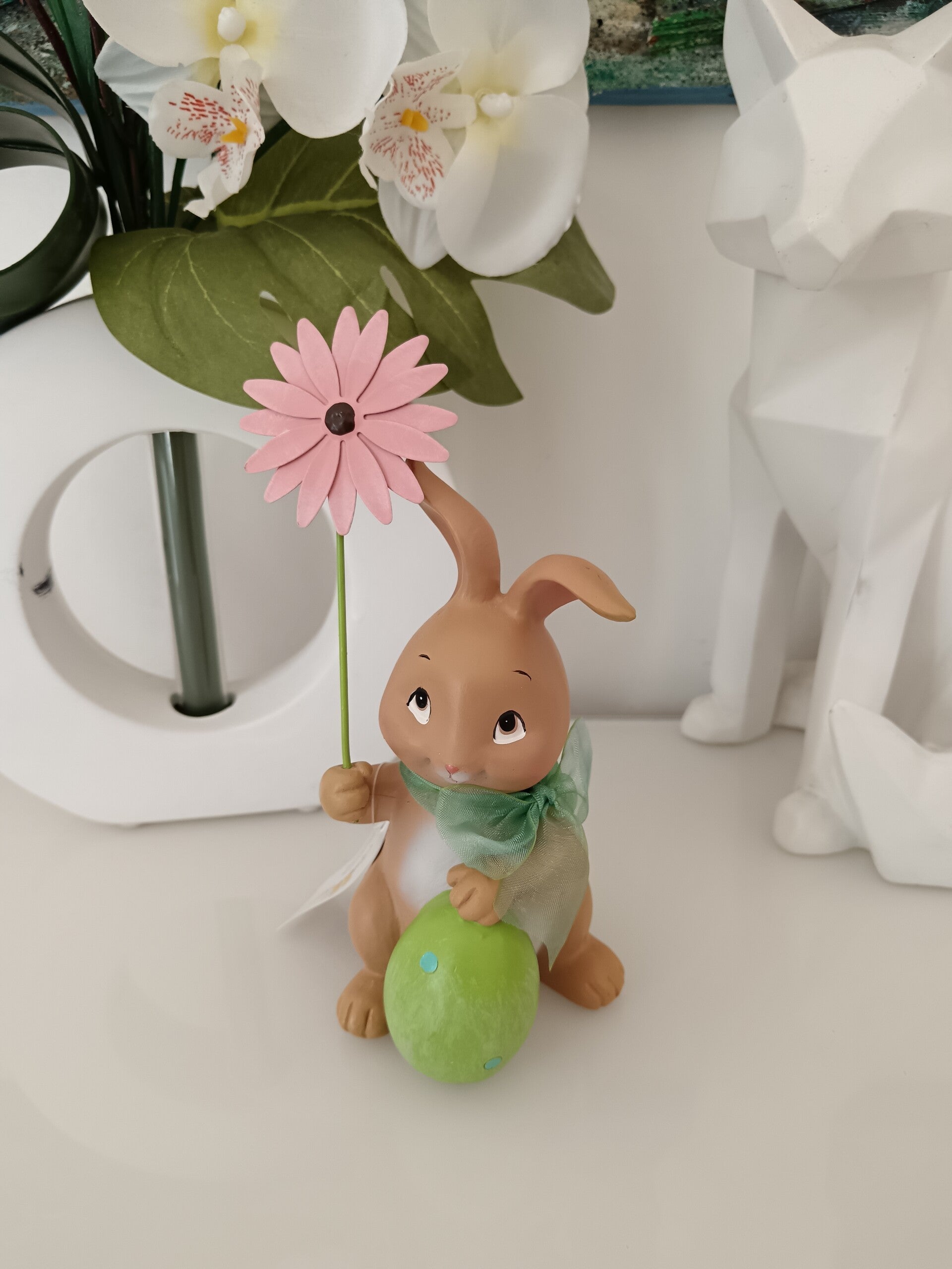 Non seulement pour Pâques, mais aussi pour le printemps, ce joli lapin ravivera tout le monde. Couleurs fraîches et jolies fleurs en métal en font une décoration intérieure parfaite. Idéal pour créer vos décors, centre de table... En polyrésine.