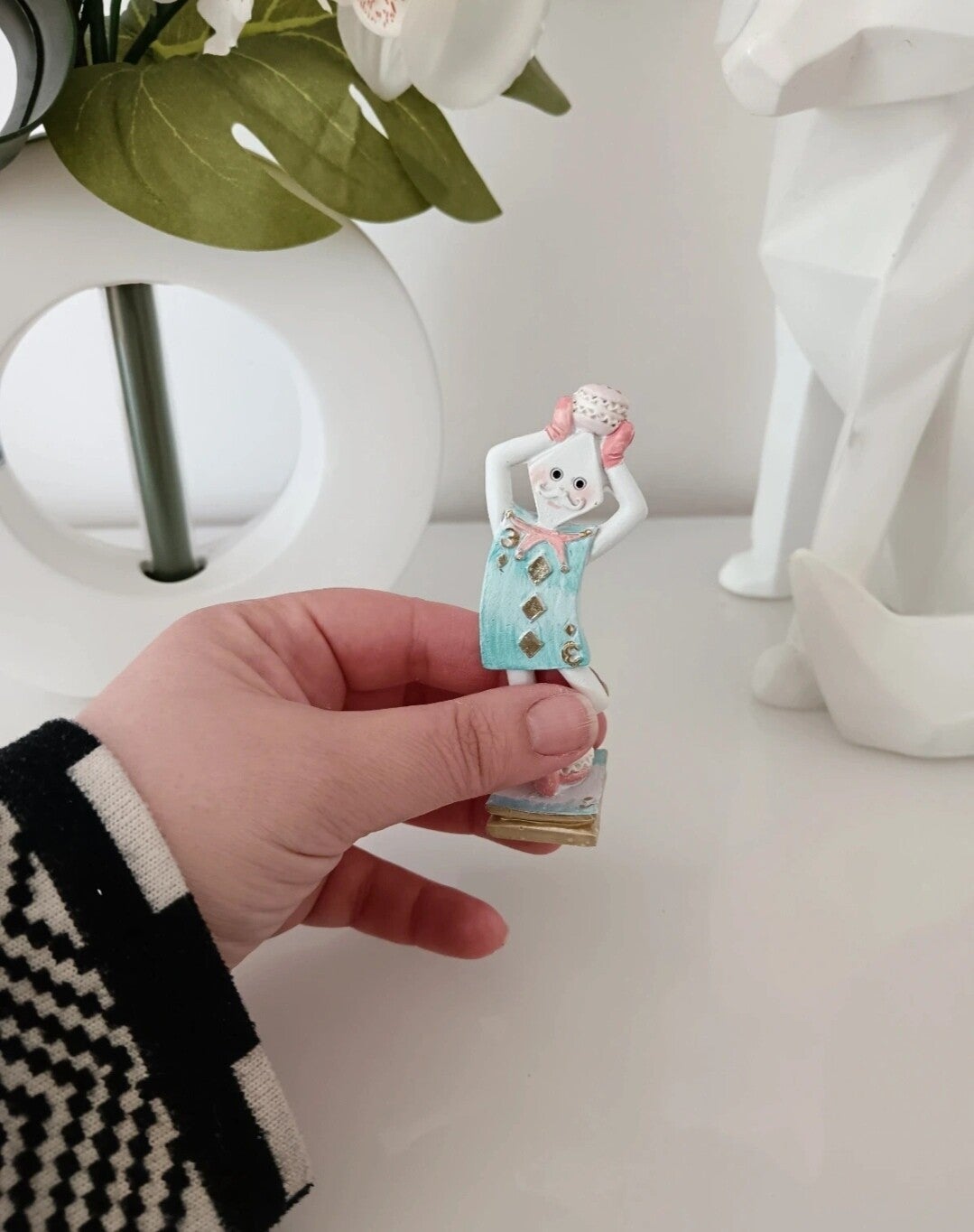 Petite décoration en forme de carte à jouer, idéale pour une décoration dans l'esprit d'Alice au pays des merveilles. Ses couleurs se marient parfaitement avec un style Shabby. En polyrésine.
