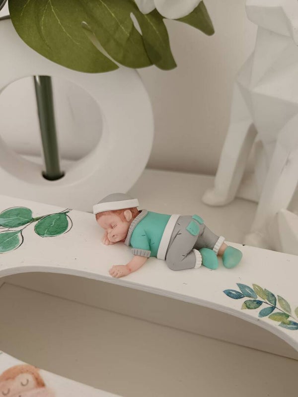Boîte à mouchoirs en bois décorée à la main avec la technique du serviettage. Ces couleurs claires en font à la fois un objet pratique et décoratif qui ira parfaitement dans la chambre d'un petit garçon. Un bébé en polymère vient finir de la décorer. Parfait comme cadeau de naissance, de baptême, anniversaire... Deux couches de vernis la protègent. Création artisanale et unique.
