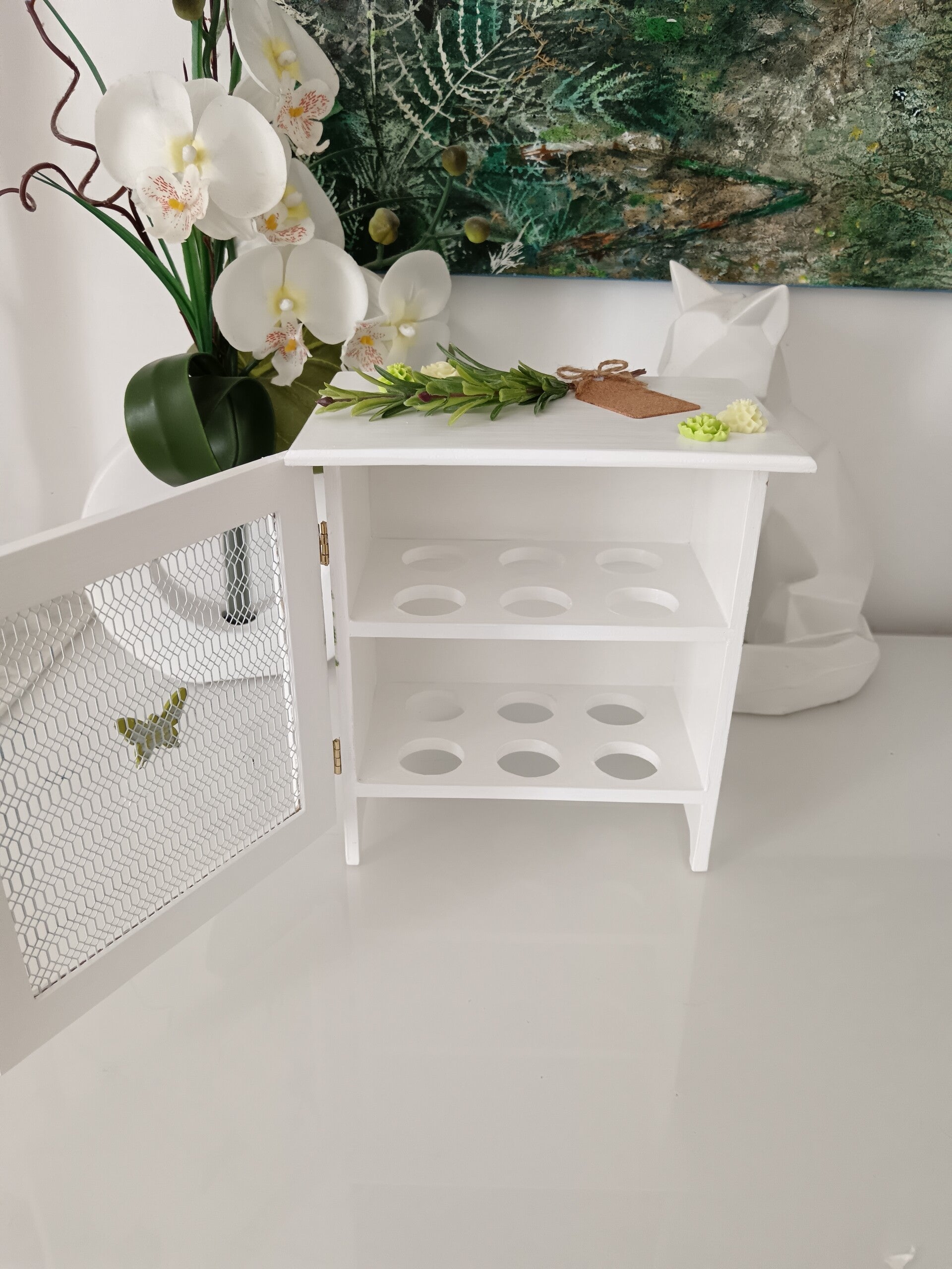 Petite armoire en bois pour stocker 12 oeufs. Cette création artisanale sera aussi une belle décoration pour votre cuisine. Décorée avec la technique du serviettage. Cadeau parfait pour Noël, un anniversaire, fête des mères...Elle est protégée par deux couches de vernis pour un meilleur entretien.