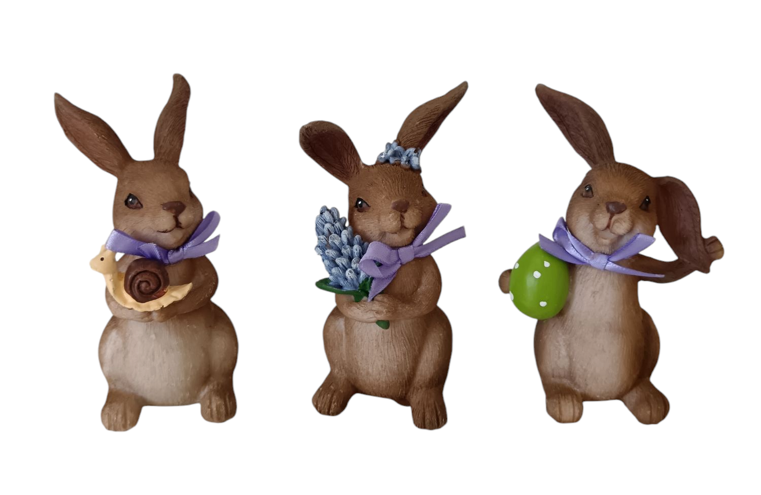 Petit lapin parfait pour une décoration printanière et les amoureux de lavande. Vous pouvez aussi l'utiliser pour décorer un centre de table pour le repas de Pâques par exemple. En polyrésine.
