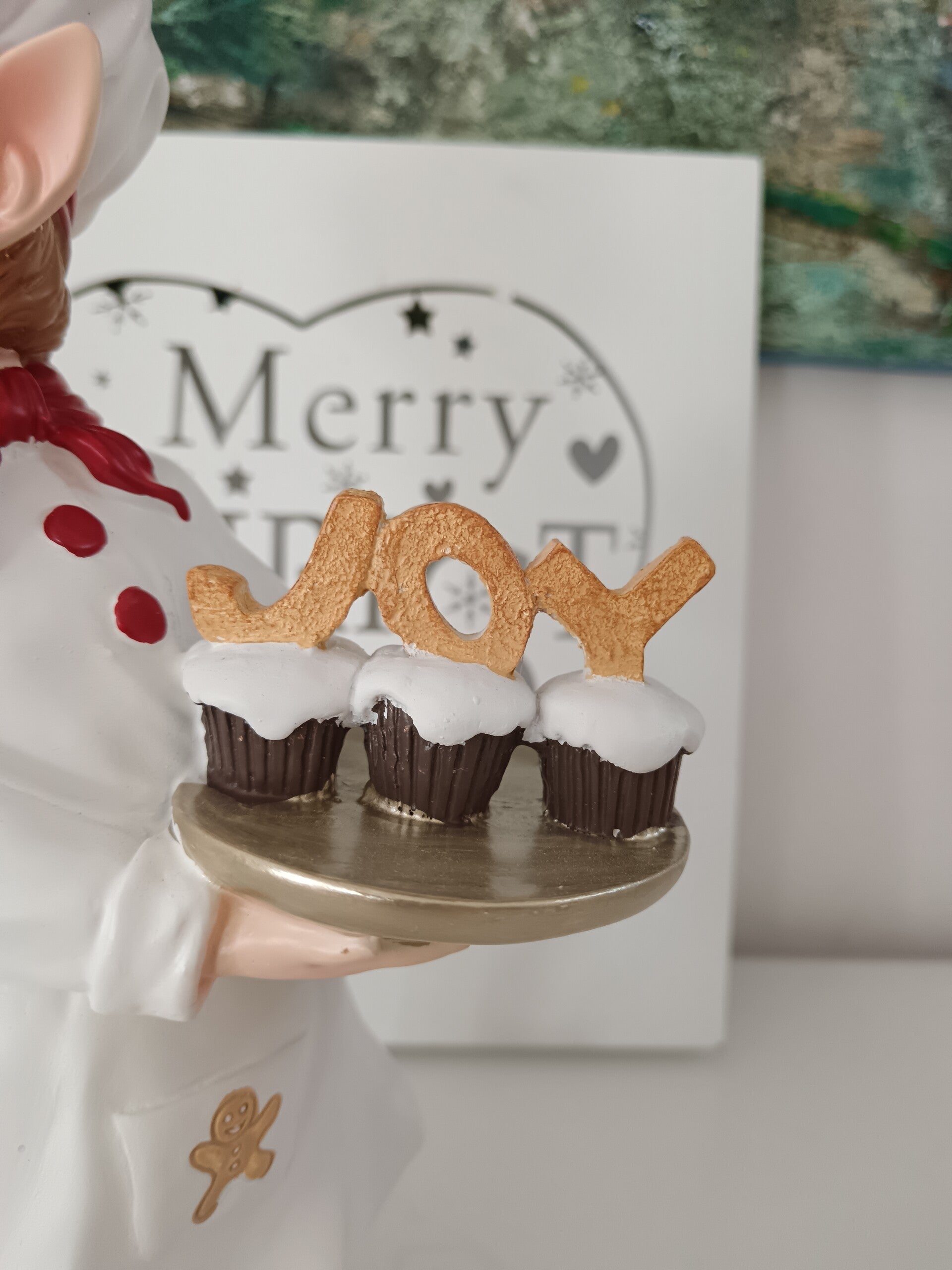 À poser dans la cuisine, sur une table de fête ou près du sapin pour une ambiance aussi délicieuse que féerique ! En polyrésine.