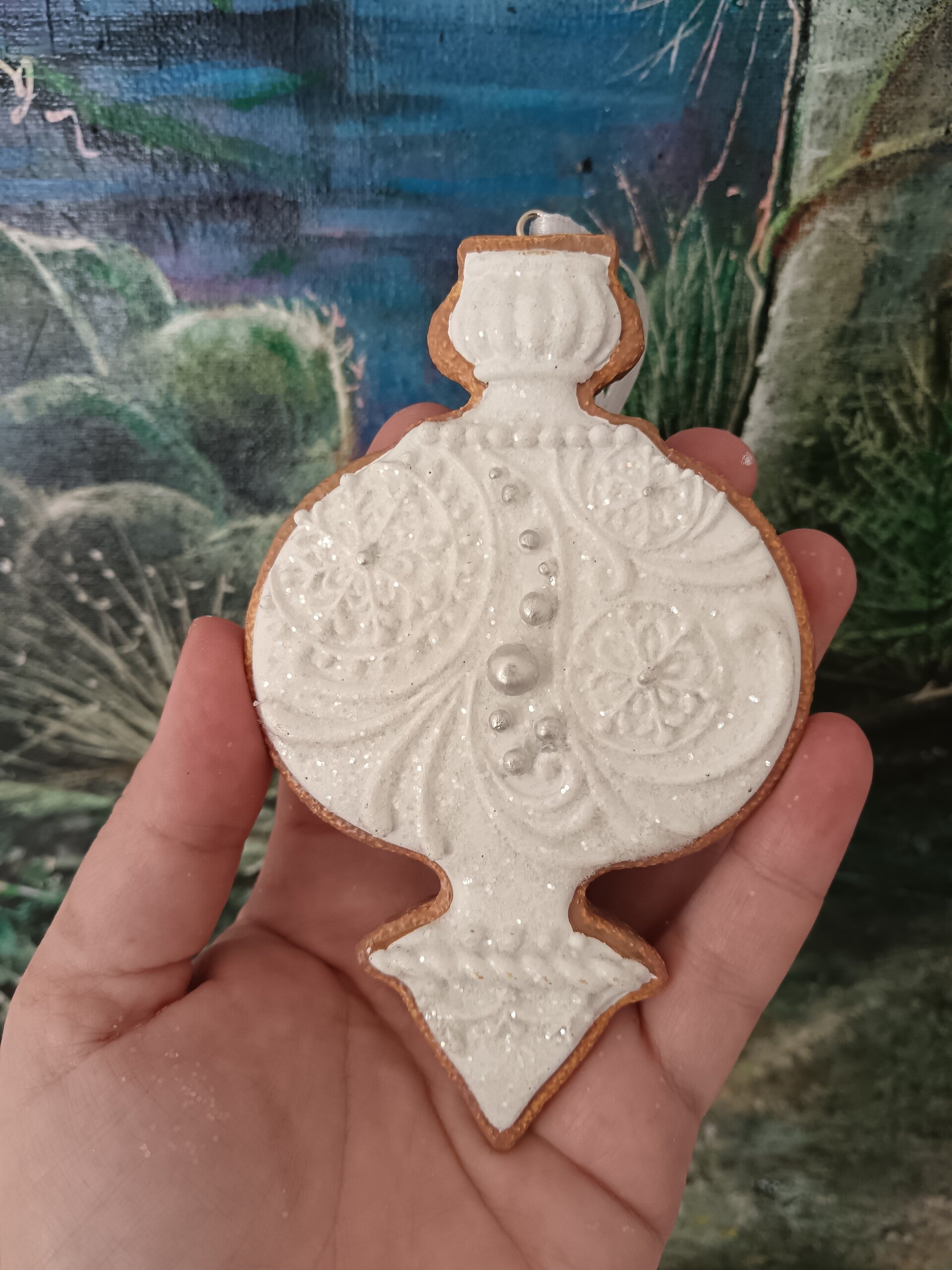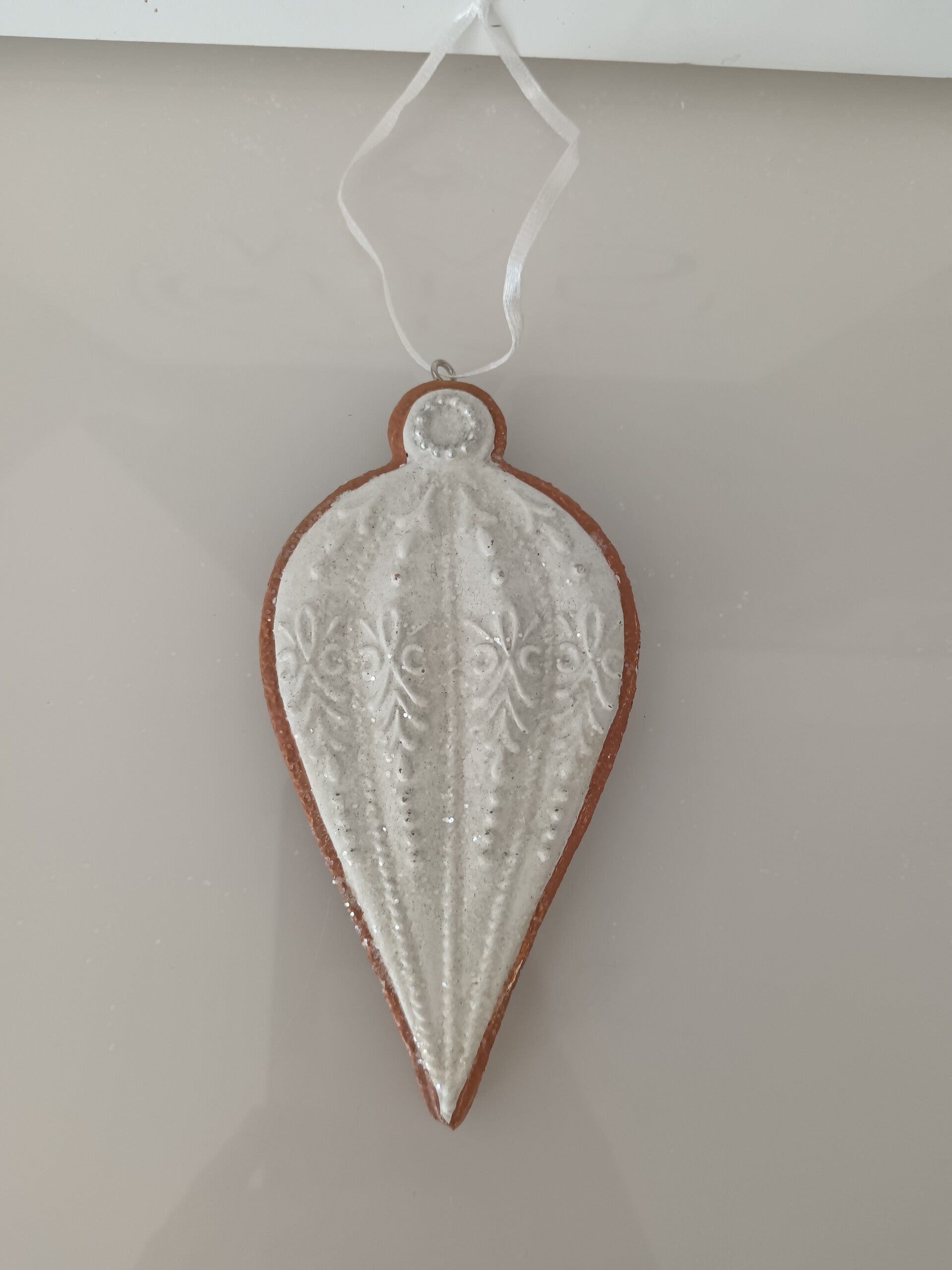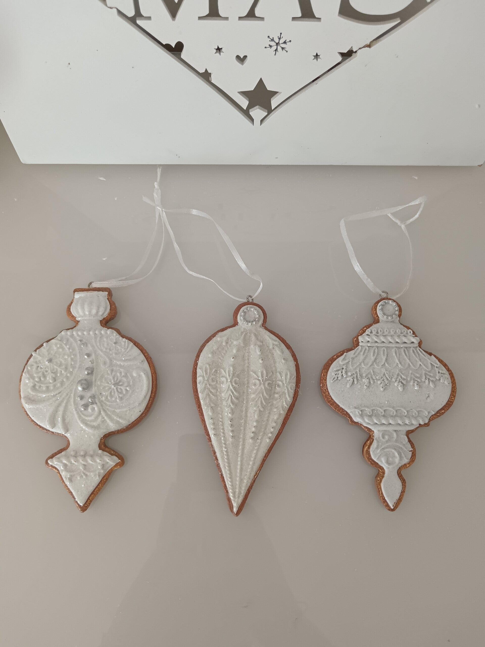 Apportez une touche gourmande et nostalgique à votre sapin avec ces magnifiques suspensions de Noël en forme de biscuits décorés de glaçage blanc. Chaque pièce imite l'apparence d’un véritable biscuit en pain d’épices, délicatement orné de motifs aux détails raffinés. Leur style rétro et élégant en fait des incontournables pour une décoration chaleureuse et originale. En polyrésine.
