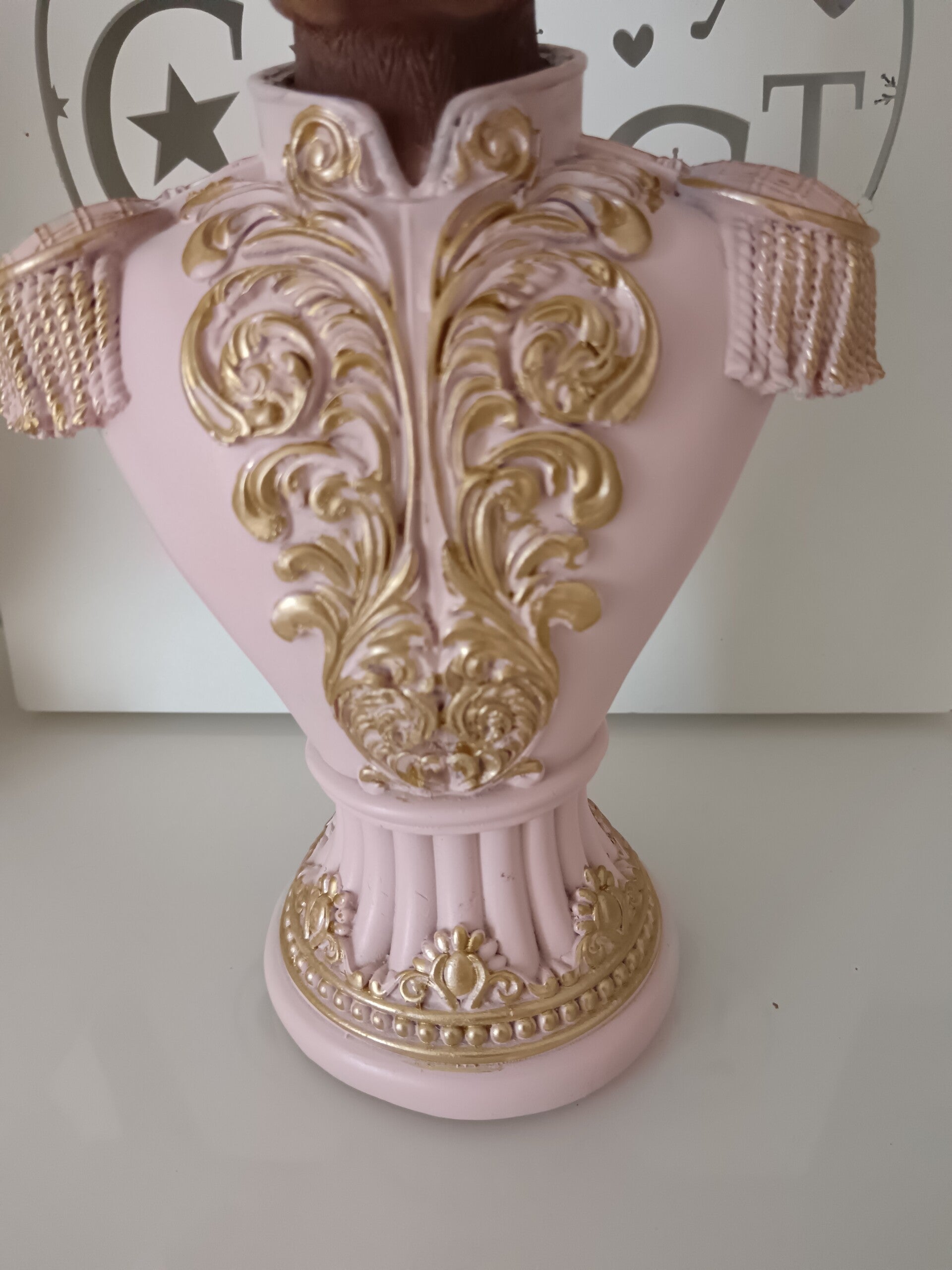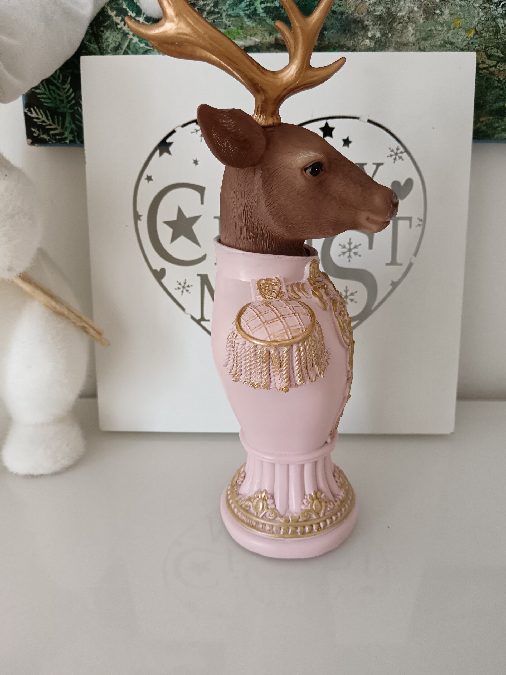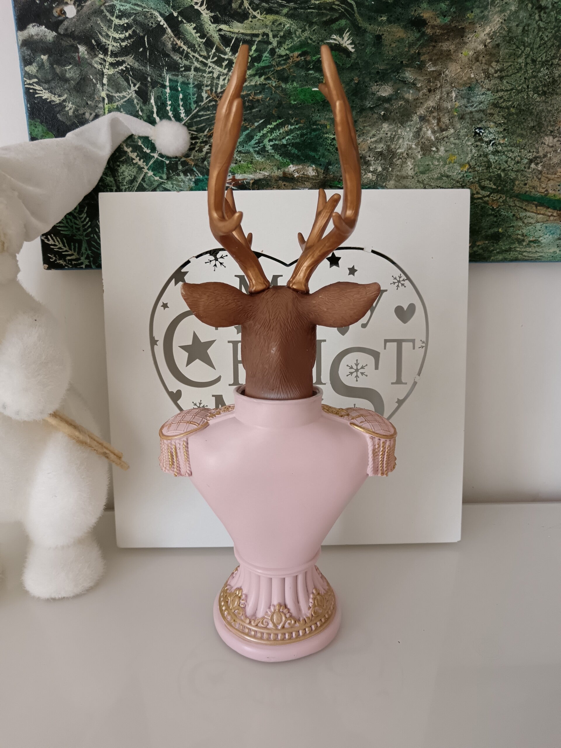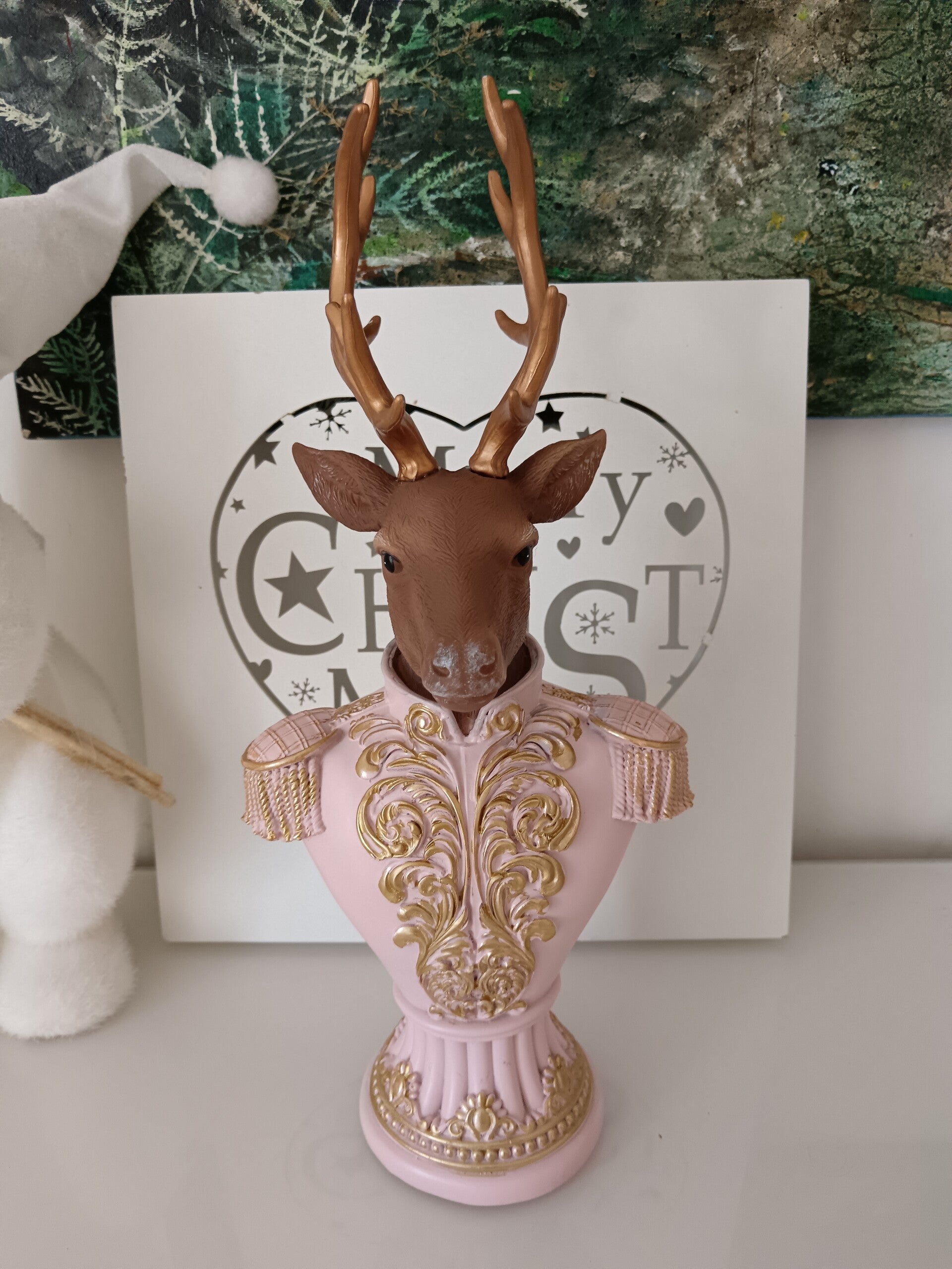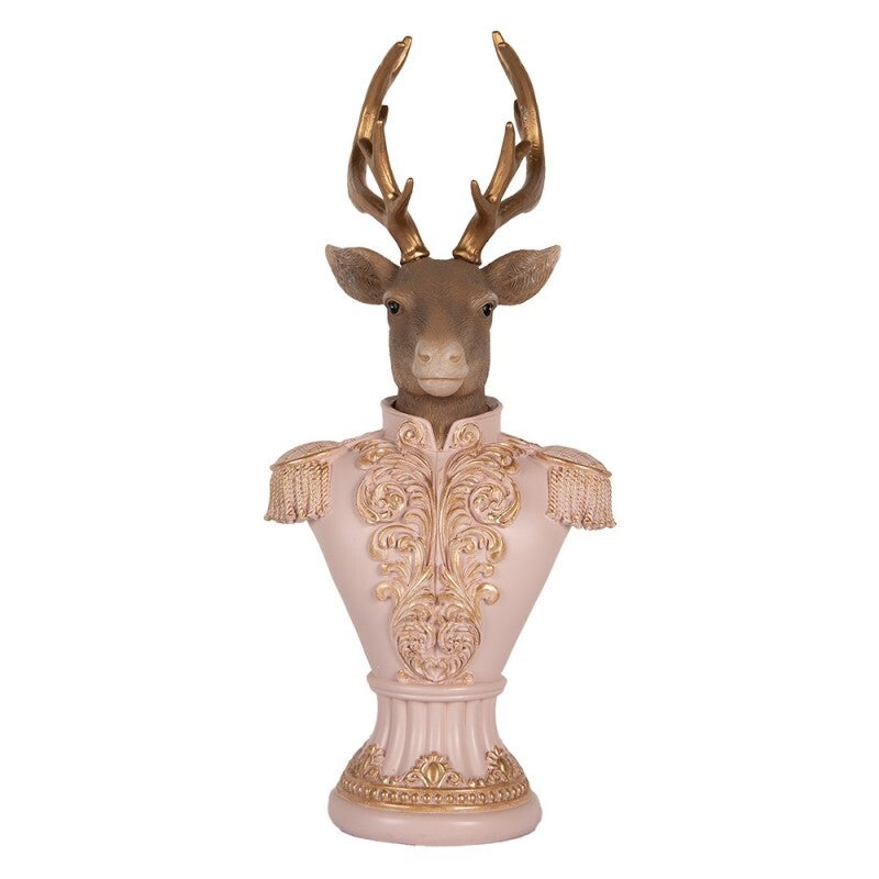 Ajoutez une touche de fantaisie aristocratique à votre intérieur avec ce buste décoratif unique en son genre ! Avec son mélange audacieux de réalisme animalier et d'élégance baroque, ce cerf royal vêtu d'un uniforme rose poudré orné de dorures ne passe pas inaperçu. Idéal pour un Noël Shabby chic mais aussi pour tout le reste de l'année. En polyrésine. Découvrez, dans les mêmes coloris, le buste casse-noisette: Buste casse-noisette "rose"