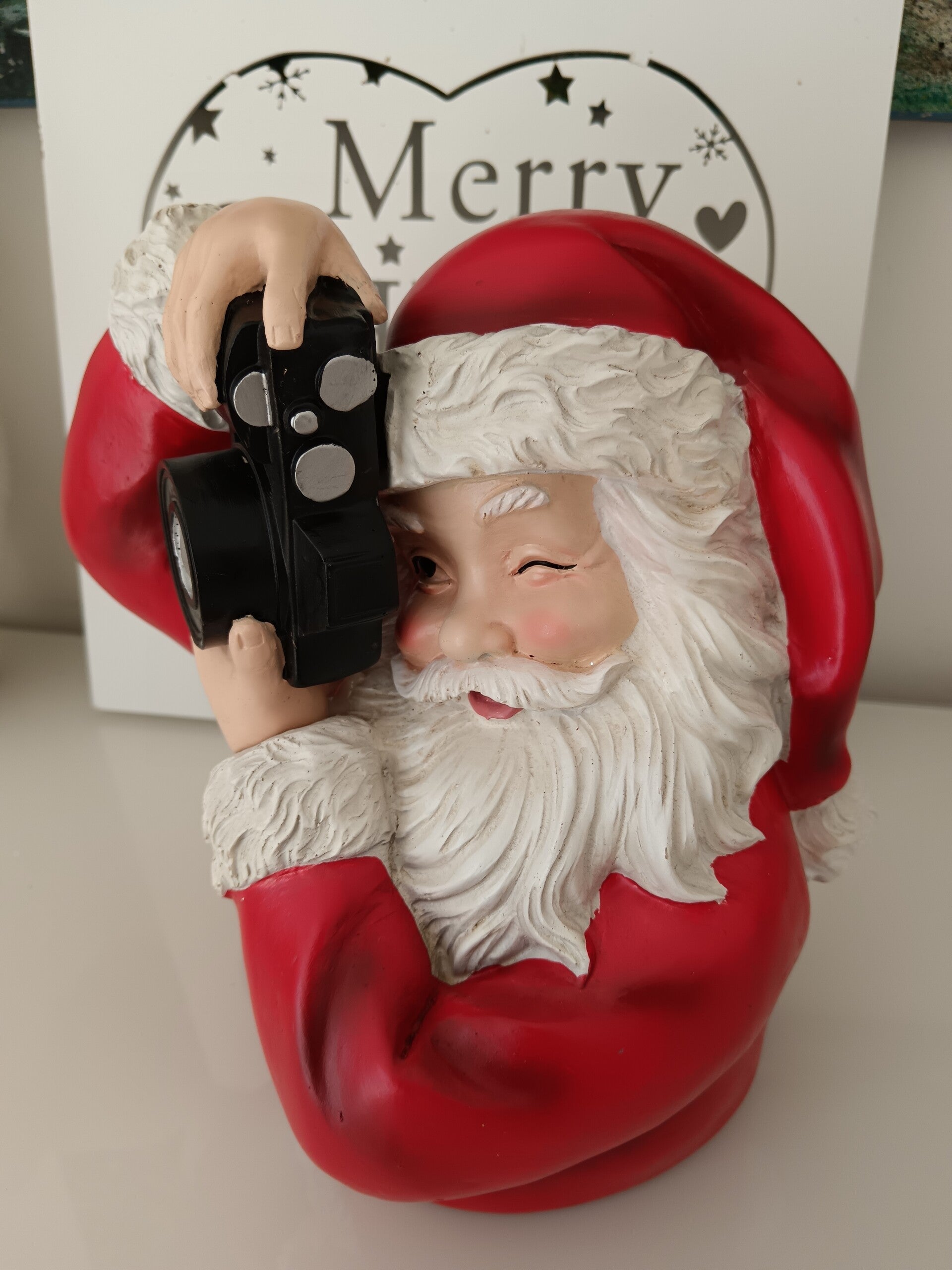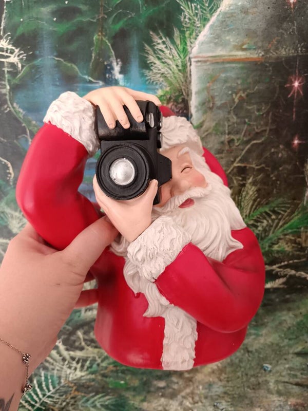 Ce buste original du Père Noël photographe apportera une note d’humour et de convivialité à votre décoration de fêtes. Avec son appareil photo en main, le célèbre bonhomme en rouge capture vos plus beaux souvenirs de Noël ! Réalisé avec soin, ce personnage coloré et plein de détails est idéal pour habiller une étagère, une cheminée ou une table décorative. Une idée cadeau originale pour les passionnés de photo comme pour les amoureux de la magie de Noël. En polyrésine.