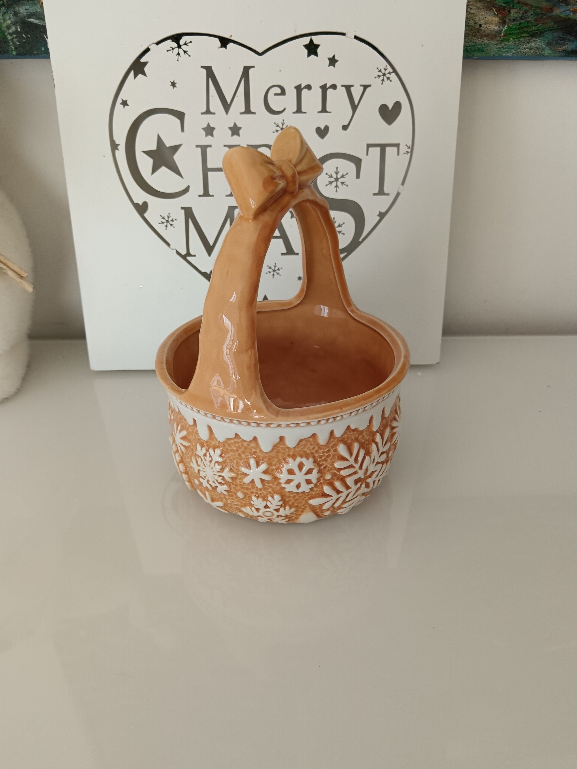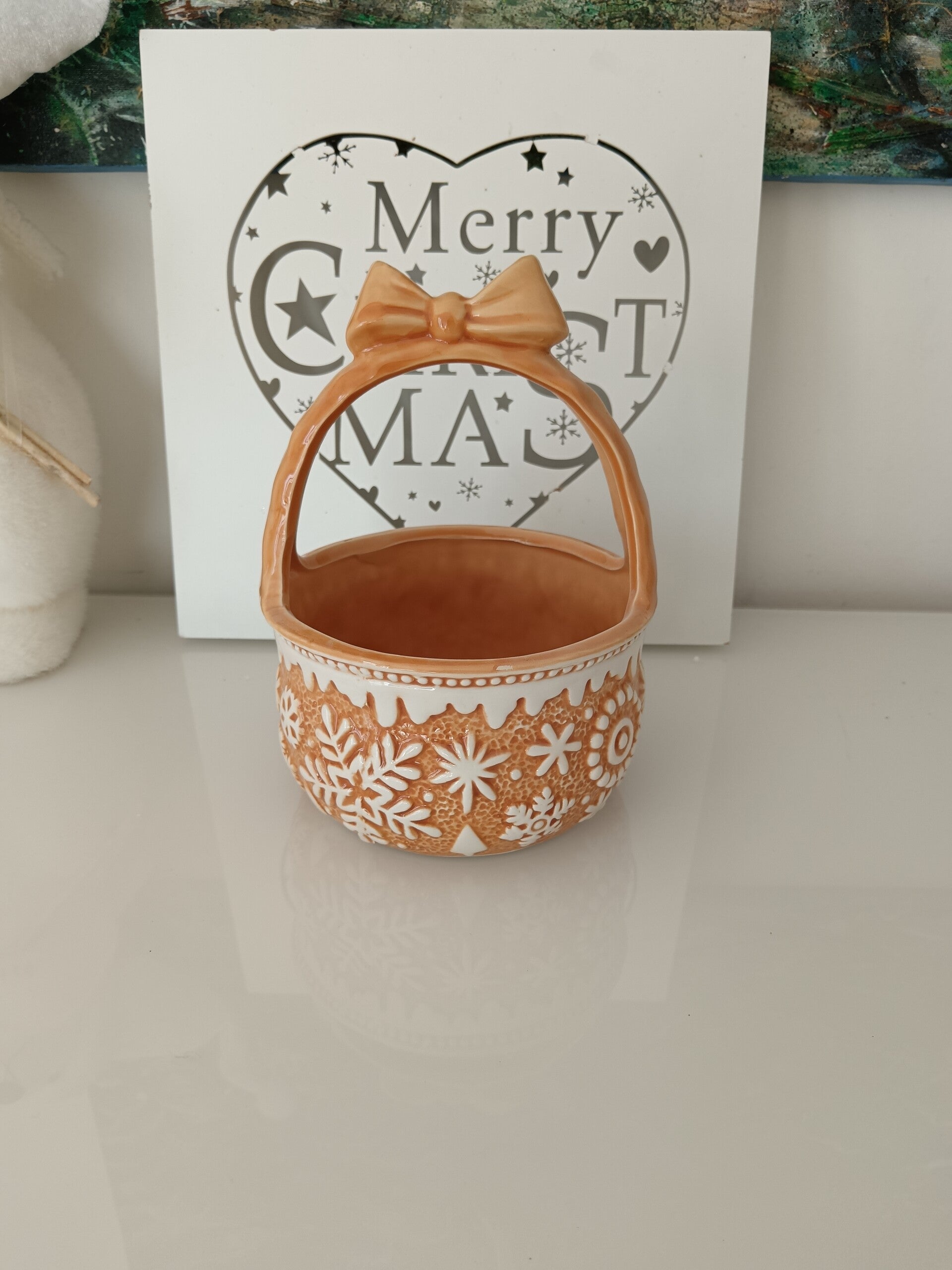 Apportez une touche de charme et de gourmandise à vos fêtes avec ce superbe panier en céramique décorative !