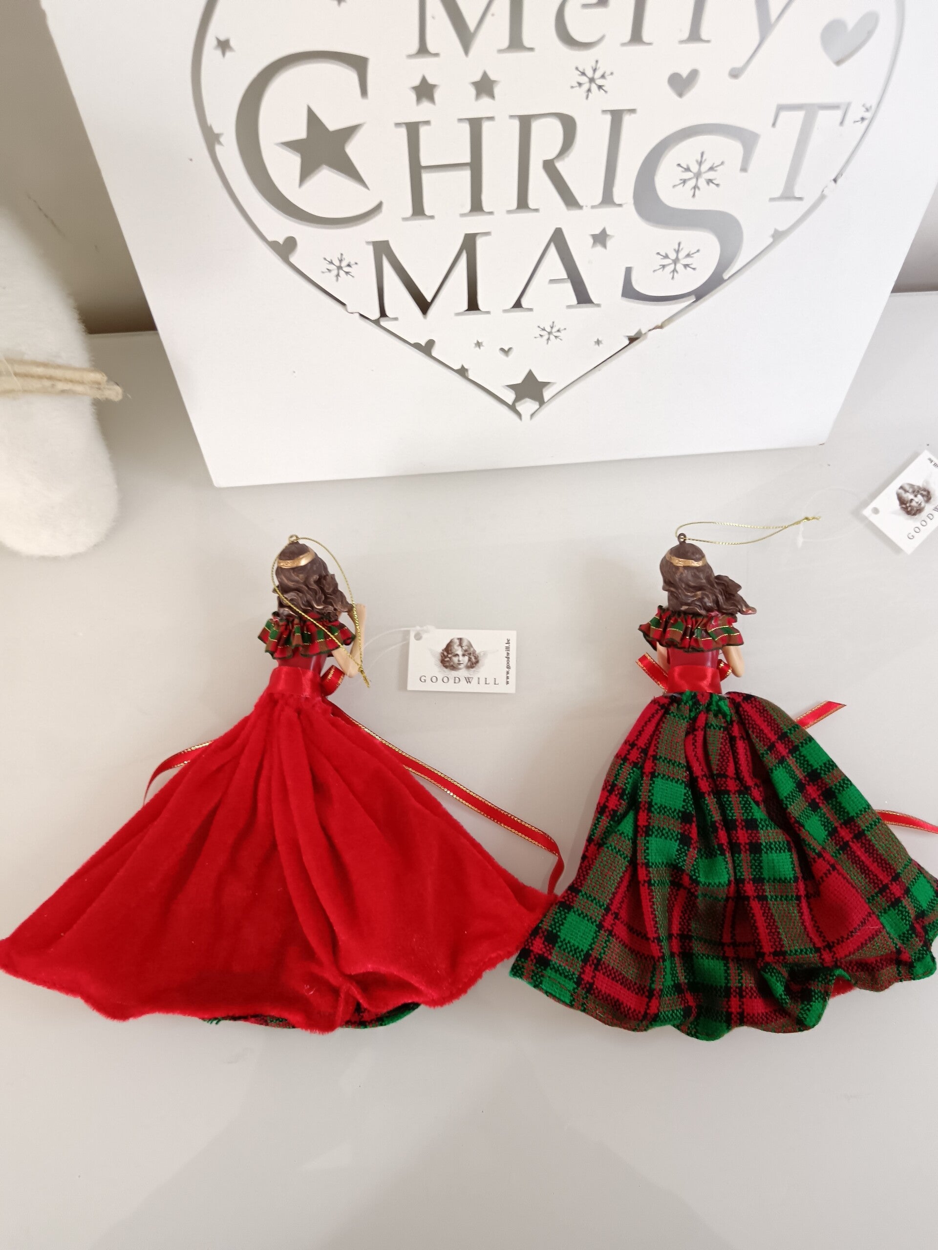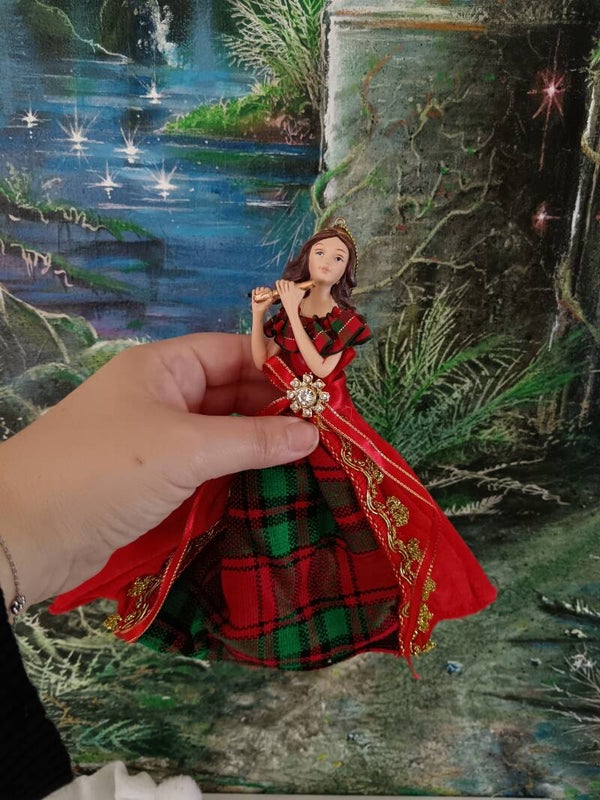 De belles musicennes de la marque Goodwill. Couleurs traditionnelles et tissu style tartan parfait pour un Noël écossais. A suspendre au sapin, à une poignée de meuble, au centre du couronne de Noël... Buste en polyrésine.