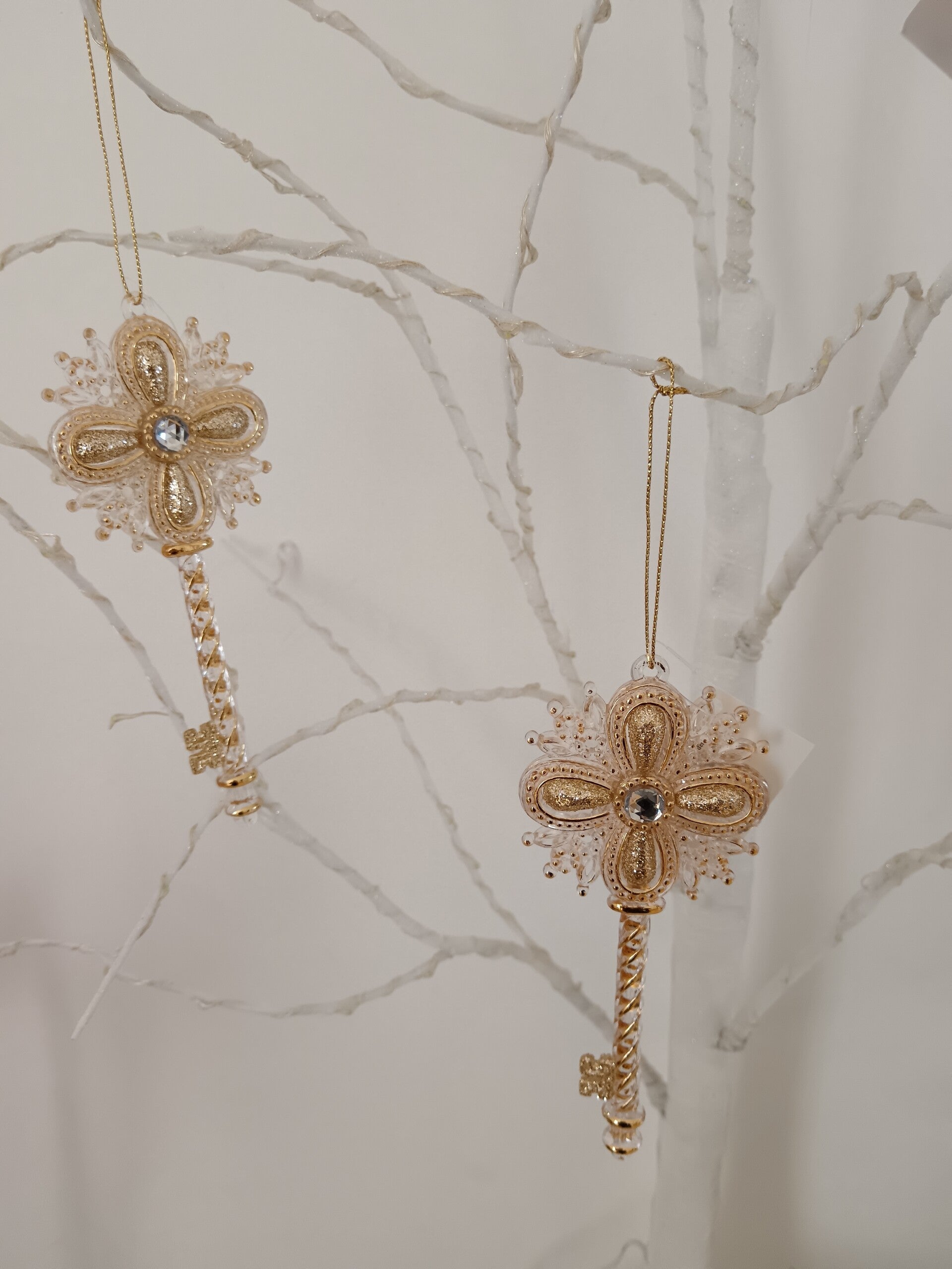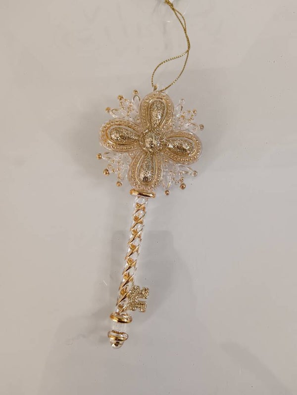 Apportez une touche d’élégance et de féérie à votre intérieur avec cette superbe clé décorative signée Goodwill. Finement travaillée, elle arbore un design raffiné en forme de fleur scintillante, sublimée par des détails dorés et pailletés. Accrochée à un sapin de Noël, suspendue à une poignée ou utilisée comme élément déco raffiné, cette pièce unique illuminera votre décoration par son éclat luxueux.