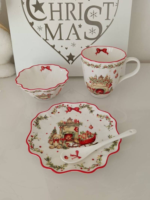 Plongez dans la magie des fêtes avec ce bol festif signé Isabelle Rose, parfait pour vos petits-déjeuners d’hiver ou vos desserts de saison. En porcelaine fine, il est orné d’un ravissant décor de cheminée de Noël, de rubans rouges et de houx, évoquant toute la chaleur et la convivialité des moments partagés en famille. Parfait pour compléter votre vaisselle de fête ou à offrir comme cadeau de Noël raffiné et chaleureux. L’assiette assortie et le mug sont vendus séparément.