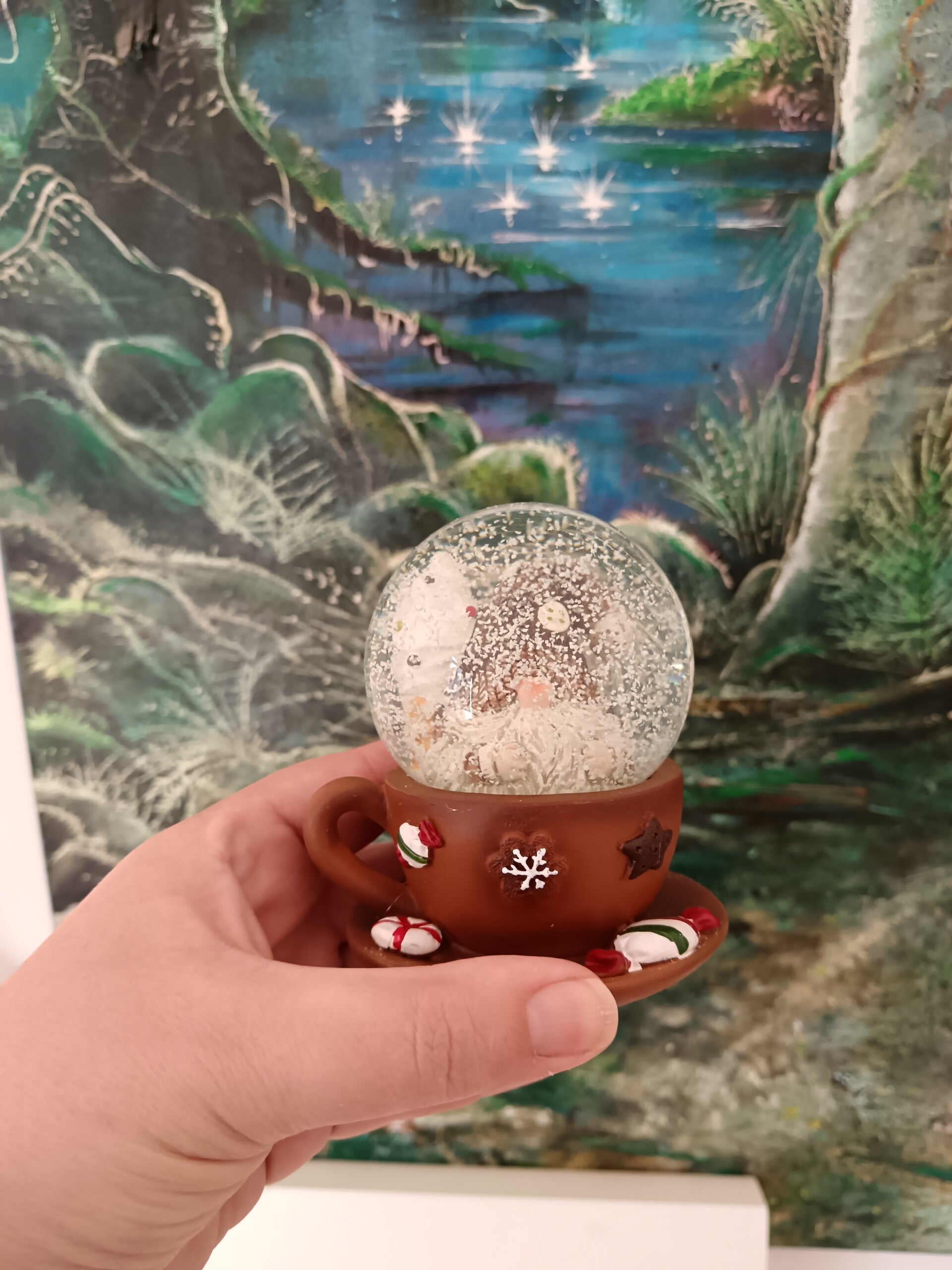 Craquez pour cette boule à neige pleine de douceur et de fantaisie ! Son petit gnome barbu niché dans une tasse pain d'épices évoque la magie et la gourmandise des fêtes. Une décoration originale et chaleureuse qui ravira petits et grands.