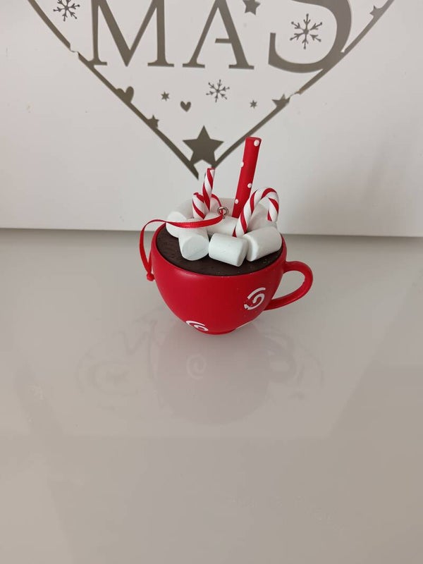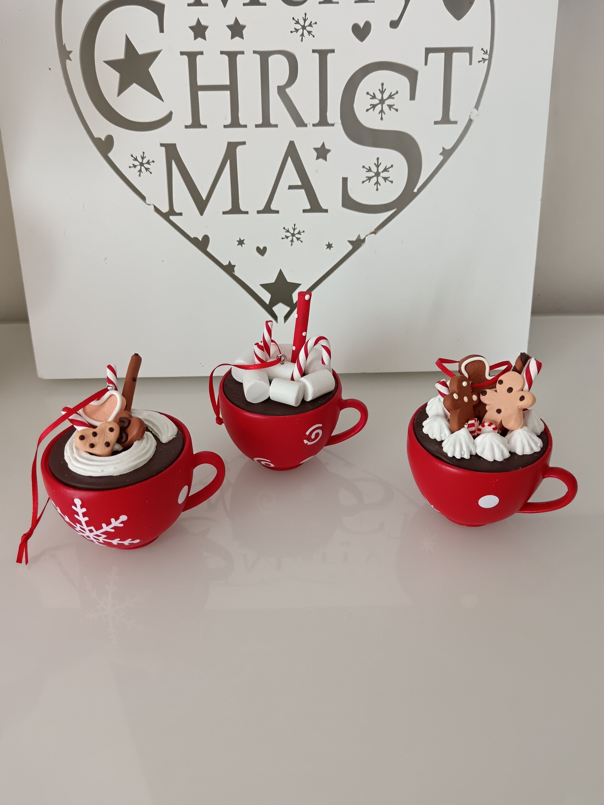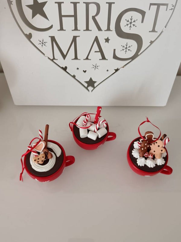 Ajoutez une touche sucrée et festive à votre sapin avec ces adorables tasses rouges remplies de douceurs hivernales ! Chaque modèle évoque un délicieux chocolat chaud décoré de biscuits, crème fouettée et sucre d’orge. Parfaite pour une déco cocooning et gourmande ! En polyargile.
