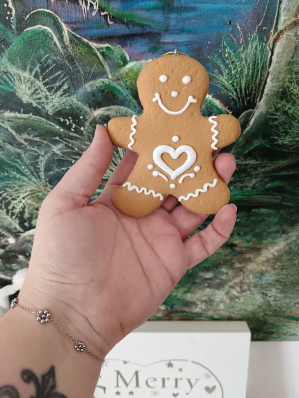Craquez pour ces adorables suspensions en forme de bonhommes pain d’épices, décorées d’un délicat glaçage blanc ! En polyargile légère et durable, elles imitent à la perfection les véritables biscuits de Noël. Un charme authentique et gourmand pour embellir votre sapin ou votre décoration de fêtes.