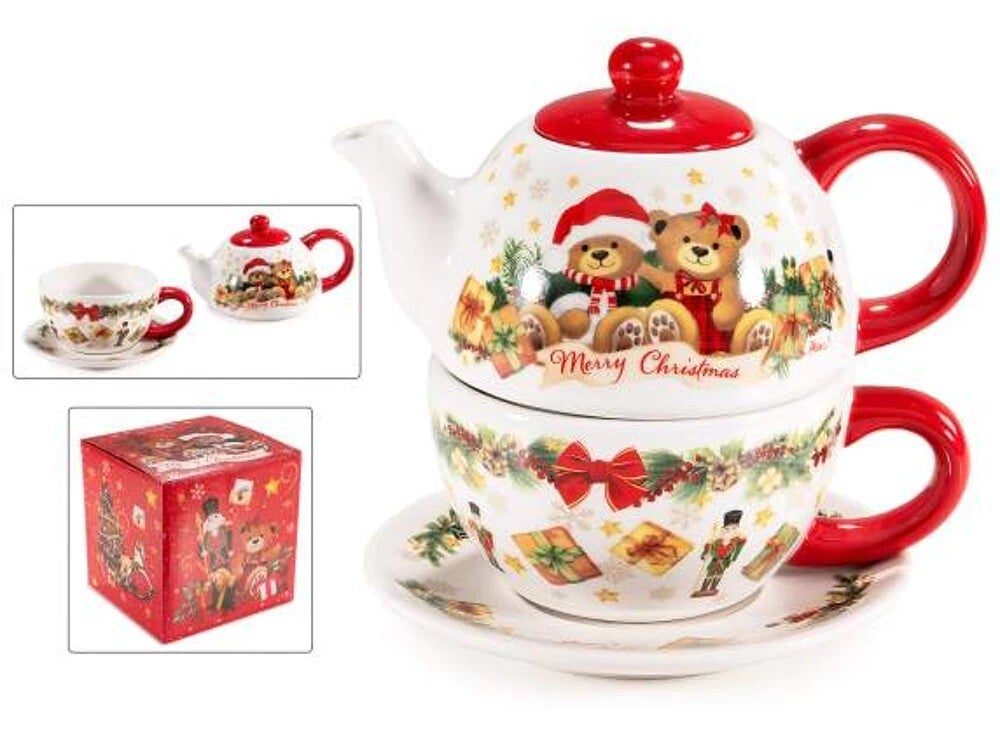 Offrez la magie de Noël avec ce charmant ensemble théière et tasse empilable décoré de deux adorables oursons festifs. Avec ses couleurs chaleureuses, ses motifs cadeaux et son emballage cadeau assorti, ce set est parfait pour savourer une boisson chaude en hiver ou pour offrir un présent plein de douceur. Idéal pour créer une ambiance cosy et féerique ! En céramique.