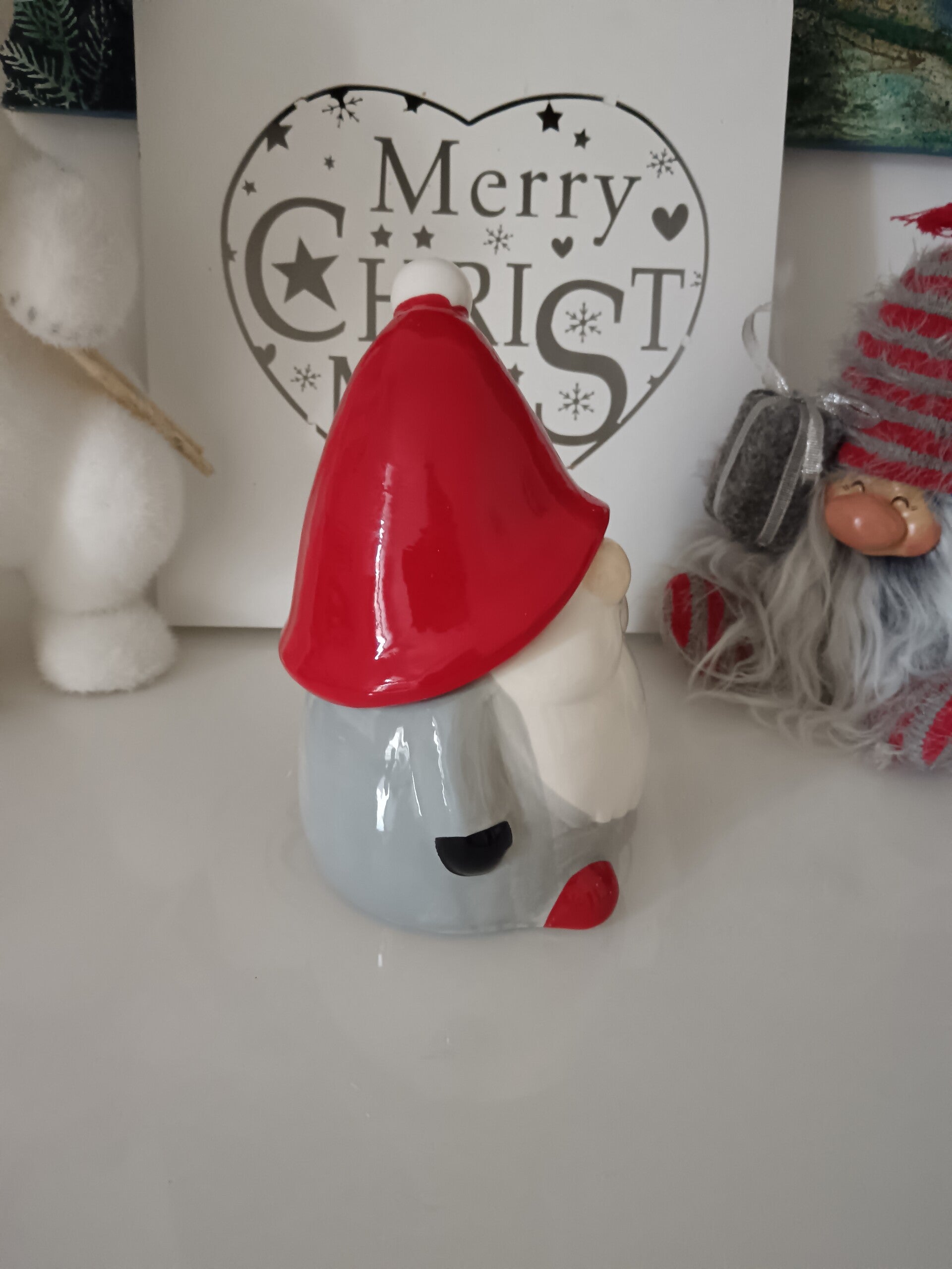 Pot à biscuits en céramique esprit Noël, en forme de petit gnome au bonnet rouge. Design chaleureux et brillant, idéal pour conserver vos gourmandises tout en décorant votre cuisine avec une touche festive et tendance. En céramique.