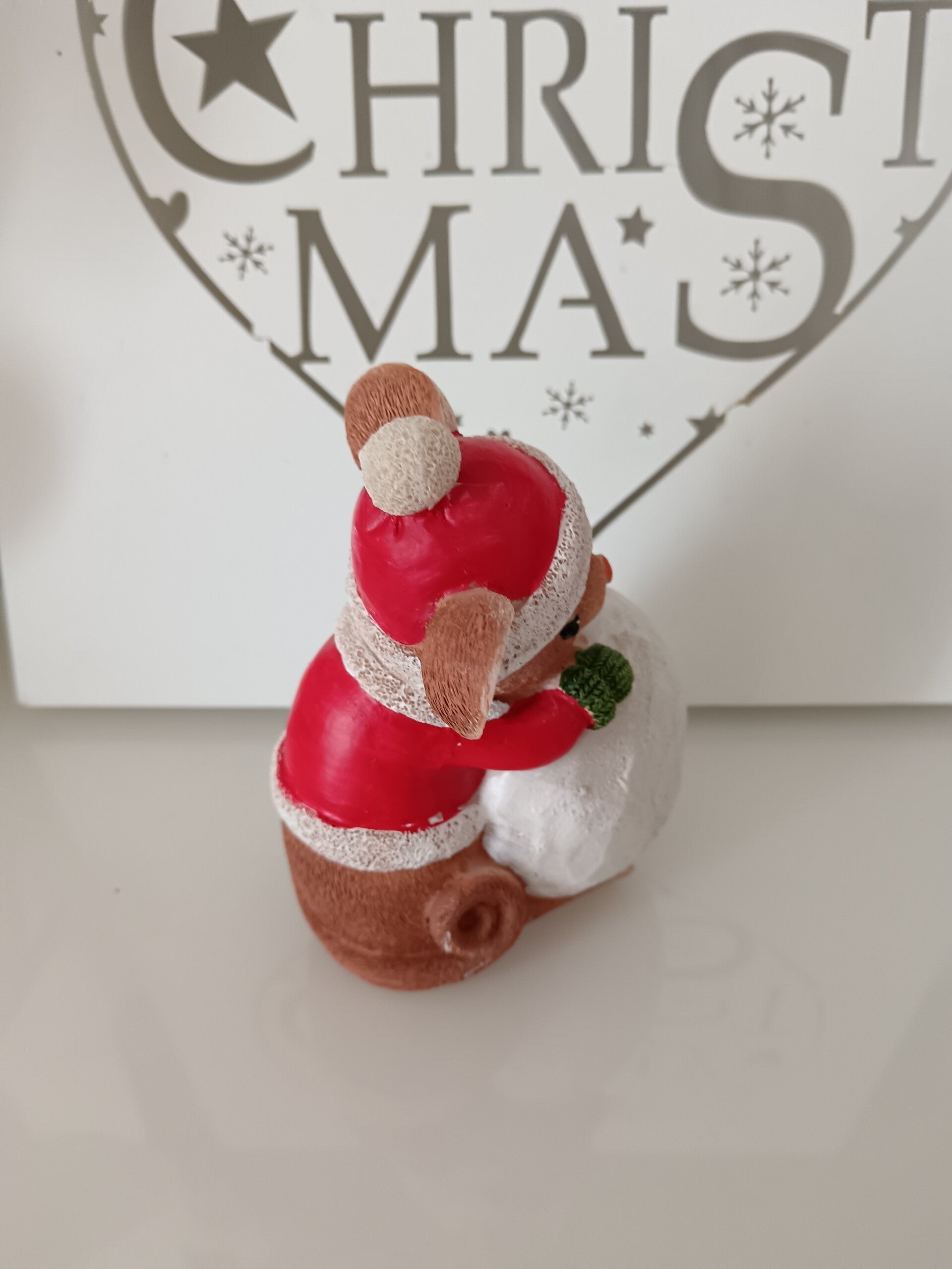 Avec son bonnet festif et sa grosse boule de neige, elle apporte une touche ludique et chaleureuse à votre décoration. Parfaite pour une ambiance douce, féerique et hivernale. En polyrésine.
